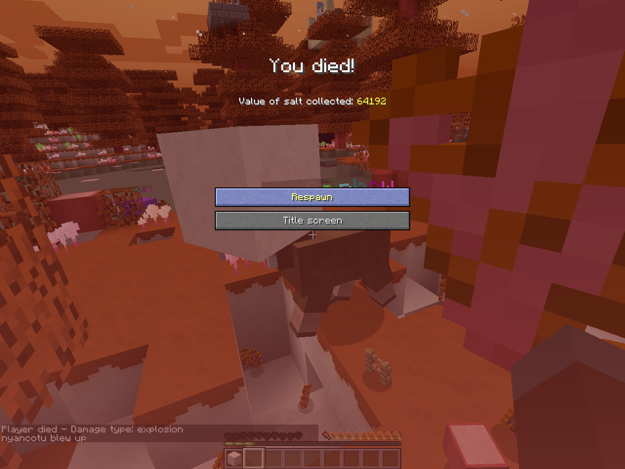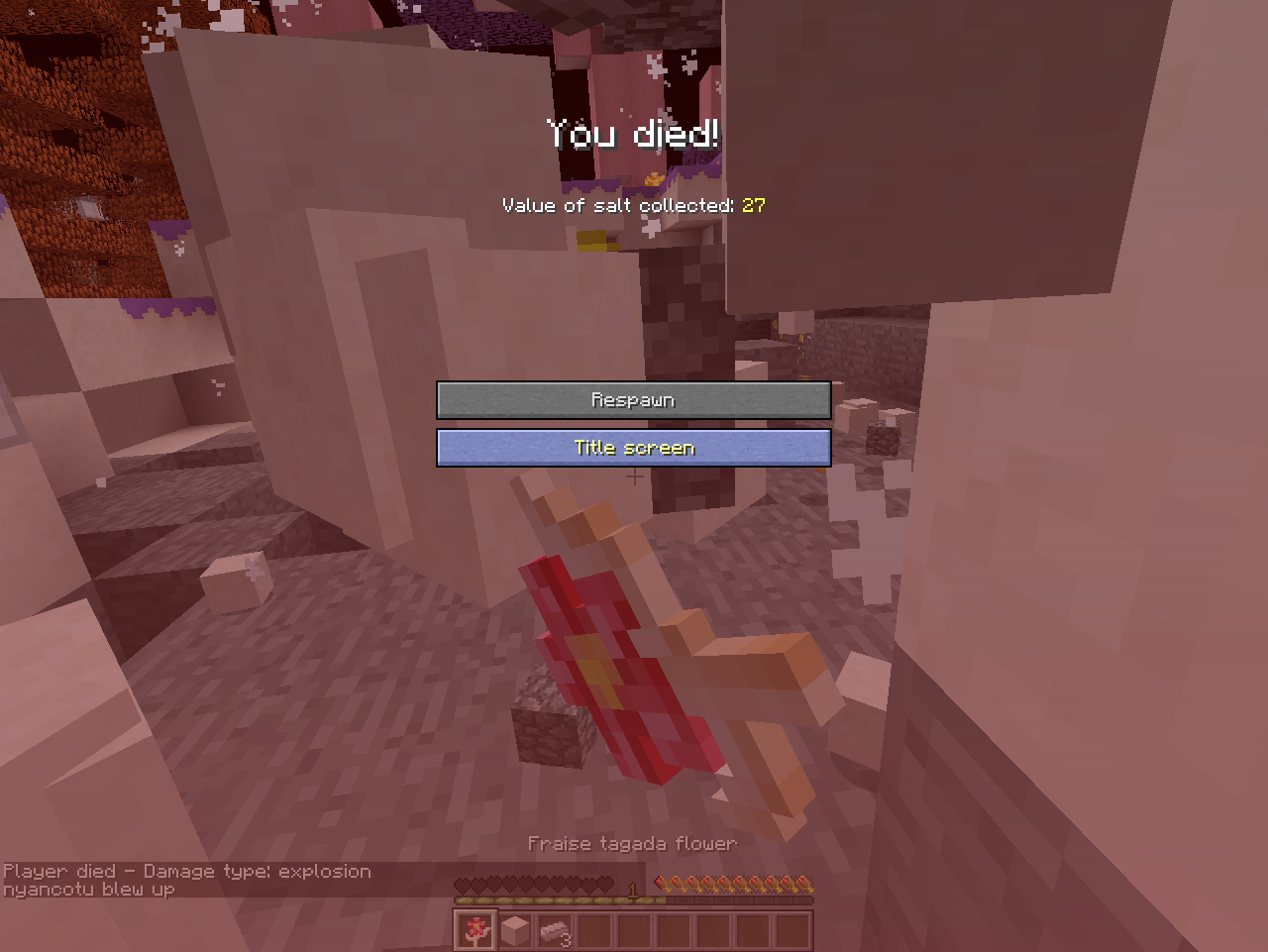mod名は不明だが、体温(温度?)・酸素量・喉の渇きが追加されるmodやSpice of Lifeやらのプレイヤーに色々管理させる要素が満載。
