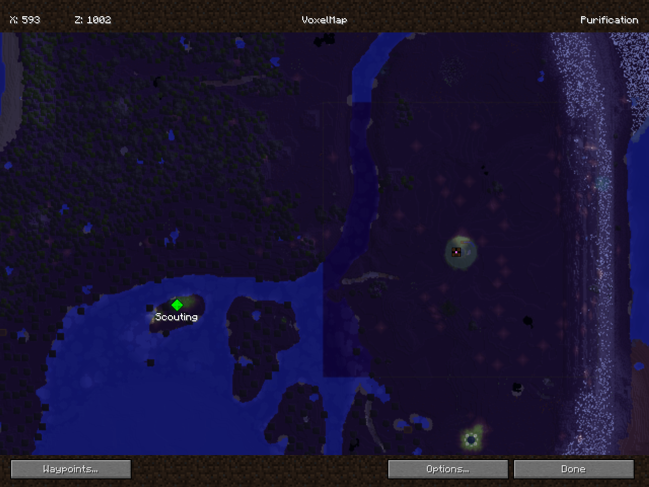 その一方でCoalはY座標が高いエリアかExtreme hills(詳細不明)ぐらいでしか見つけることが出来ず、開始地点次第ではちょっとめんどくさい。